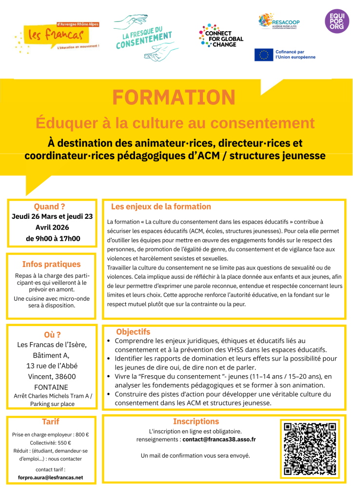 - Construire des pistes d’action pour développer une véritable culture du consentement dans les ACM et structures jeunesse.
